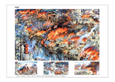 以反映重庆在抗日战争中的1939年至1945年间遭受日军轰炸为内容的巨幅油画《重庆大轰炸》已经完成了初稿创作。昨日,该画总策划、著名画家陈可之先生向记者展示了该画的初稿。据悉,该画将于明年纪念抗日战争胜利60周年之际完成创作,并计划到包括日本在内的世界各地巡展。