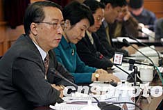 三月十八日,中国教育部在北京举办新闻发布会,会上通报了中国来华留学工作的有关情况。2003年中国共接受来自一百七十五个国家的各类来华留学人员7.8万人次。图为教育部副部长章新胜(左一)在新闻发布会回答记者的提问。中新社记者:张勤