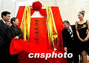 第十六届世界模特小姐大赛组委会三月十八日在北京宣布,创办于土耳其、已有十六年历史的世界模特小姐大赛将于四月至五月在中国举行。图为中国首次选派的选手、上届冠军阎巍(右)及嘉宾出席揭幕仪式。中新社记者:郑萍萍