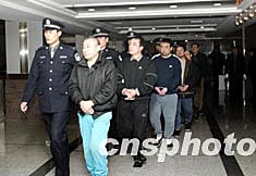 雇凶杀人的雇主王宝生(前)和“杀手”武治君被法院判处死刑;另外5名“杀手”分别被判处死刑缓期二年执行、无期徒刑及有期徒刑。