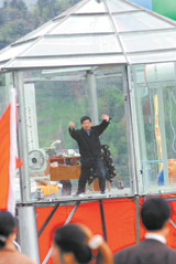昨日上午7时,记者来到碧峰峡的接待大厅外,看见陈建民已端坐在玻璃房中的书桌前开始看书。据公众见证人说,陈建民早晨6时就起床了。记者拨通了陈建民的电话后得知,原来他把平时的生活习惯也带进了玻璃房。他告诉记者,平时他就习惯6时起床,所以前晚11时许他睡下时就定好了早晨6时的闹钟。“绝食第一晚,我睡得比平时轻松。因为平时晚上还有病人来求诊,睡不安稳,昨日我一觉就睡到早上,像在休假。”