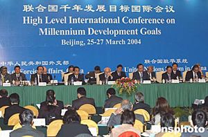 这次会议由中国政府与联合国系统驻华机构联合举办。来自联合国、政府、国际组织、私营企业、学术机构、非政府组织等方面的代表,就贫困、发展与平等、健康卫生、可持续性以及地区和全球合作等议题展开广泛探讨。联合国驻华机构在今天上午的会议上发布了《千年发展目标中国实施情况报告》。