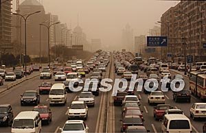 中新社北京三月二十九日电(记者 吴庆才)最近几天横扫中国北方十一个省区三百多个县市的沙尘天气今天仍在影响北京。今天,一场五六级大风的吹袭,使得本已被浮尘困扰多日的北京城遭遇了今年以来的第三场沙尘天气。
