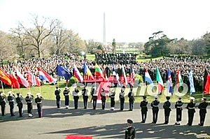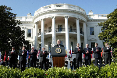 随后,美国总统布什在白宫南草坪举行仪式,欢迎七国正式加入北约。布什说,恐怖主义是北约面对的新敌人,但恐怖分子无法打破北约的团结。他还感谢七国参与在美国为首的在阿富汗和伊拉克的军事行动。