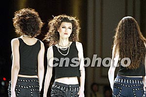 2004/2005秋冬流行趋势主导品牌“威鹏”牛仔装发布会三月三十日在北京国际时装周亮相,模特展示面料讲究、款式新颖的系列牛仔装。毛建军 摄