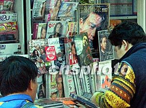 为悼念一代歌星张国荣逝世一周年,香港街头众多报刊纷纷推出纪念张国荣有关读物及画册。中新社记者:钱兴强