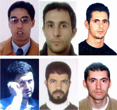 西班牙内政部长阿赛比斯31日将这6位爆炸嫌疑犯的照片发布在媒体上,希望人们能够进一步指证他们的犯罪经历。爆炸案主要嫌疑犯共有6人,其中5名摩洛哥人,1名突尼斯人。