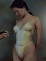 第一次接受人体彩绘创作的感觉又期待。又怕受伤害,在身体上绘画美丽的图腾感觉很新鲜,也因为不曾接受人体彩绘创作,不晓得颜料会不会伤害皮肤,我运气很好遇到专业的人体彩绘老师庄明诚,老师说明他使用的彩绘产品,是好莱坞知名艺人使用的专业品牌化妆品,使我放心许多,原本以为在身体上画画会痒,还没下笔前就“哈哈大笑”笑了半天,当真正在身体上画时又感觉不到“痒”因为老师在创作速度很快,有点像是在轻轻拍打,而且从头到尾他都是“悬笔”创作,所以也只有画笔的接触,让我建立对庄老师的信任,明诚老师很认真有点严肃,只是觉得下笔有点冰冰的。