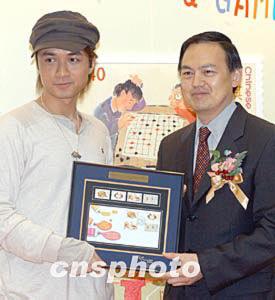 歌星古巨基4月7日在香港出席邮政署发行《儿童邮票---我最喜爱的玩具和游戏》特别邮票发行仪式。