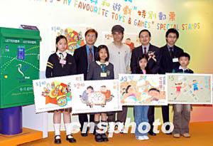 4月7日,香港邮政署发行《儿童邮票---我最喜爱的玩具和游戏》特别邮票,四位小小设计师共同展示其设计之新邮票样本,并与邮政署长蒋任宏、主礼嘉宾古巨基及赞助商于新邮票发行仪式上合照。