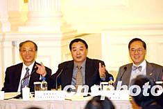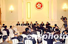 为使香港社会更多了解全国人大常委会就《基本法》附件一第七条和附件二第三条的解释,香港特区政府和中央驻港联络办公室,邀请全国人大常委会乔晓阳副秘书长、全国人大常委会法律工作委员会李飞副主任、国务院港澳事务办公室徐泽副主任,专程到港出席座谈会,听取各界人士对香港政制发展的建议。图为4月7日下午在香港礼宾府举行的香港政制发展座谈会。作者:洪少葵