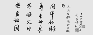 应梁衡的邀请,季老还欣然命笔,为人民日报科教文版题写了“热爱祖国,孝顺父母,尊重师长,同伴和睦”四句话。