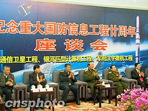 中国国防科研机构和军方八日在北京人民大会堂共同主办纪念通信卫星工程、银河巨型计算机工程和军用汉字微机工程三项重大国防信息工程二十周年座谈会,中央军委委员、解放军总装备部部长李继耐上将以及国防科研专家、军方人士两百多人参加座谈。张庆伟在座谈会上致辞时透露了上述信息。