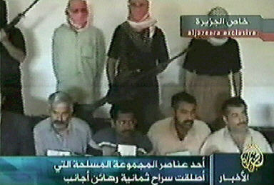 半岛电视台11日播放的一盘录像带显示,,伊拉克反美武装分子即将释放8名外国人质,包括2名土耳其人、3名巴基斯坦人、1名尼泊尔人、1名菲律宾人和1名印度人。