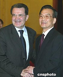 普罗迪表示完全同意温家宝对欧中关系的评价。他说,目前欧中之间的高层互访非常频繁,近期将有六位欧盟委员会成员访华,这表明欧盟对欧中关系的重视,也反映出欧盟对中国的发展抱有充分的信心。