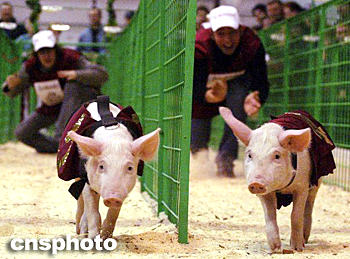 “小猪快跑奥运会”最近在俄罗斯首都莫斯科开锣,憨态可掬的小猪们在比赛中个个奋勇争先,一显“英雄本色”,令到场观众忍俊不禁。Ic/cnsphoto 摄