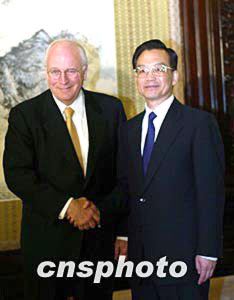 国务院总理温家宝十四日在北京会见美国副总统切尼。中新社记者:满会乔