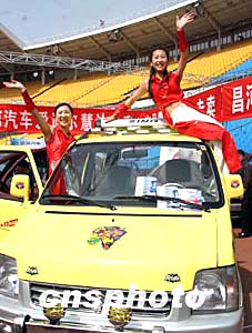 北京春季汽车大型展销会四月十四日在工人体育场拉开帷幕,十万元左右的新款国产经济型轿车引人瞩目。中新社记者:张勤