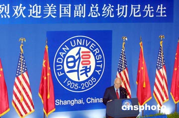 演讲会由复旦大学校长王生洪主持,上海市长韩正致辞欢迎切尼副总统和夫人访沪。