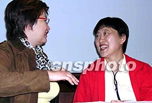 成功抢救香港凤凰卫视女主播刘海若的北京宣武医院神外科主任凌锋(右),目前在台湾进行学术交流。四月十五日,她与刘海若喜相逢。作者:黄少华