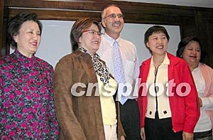 成功救回香港凤凰卫视女主播刘海若一命的大陆名医、北京宣武医院神外科主任凌锋(右二),目前在台湾进行学术交流。四月十五日,她与刘海若(左二)、刘海若母亲(左一)、刘海若姐姐(右一)、SOS中国中心主任查尔斯等相聚。作者:黄少华