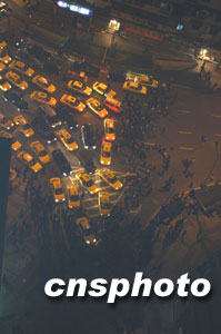 位于重庆市江北区的重庆天原化工总厂今天发生氯气泄漏事故,事故现场发生爆炸,目前已造成七人死亡,十余万民众被紧急疏散撤离。图为大批被疏散撤离的民众滞留街头造成交通堵塞。 作者:郭晋嘉