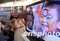 由北京市政府发展和改革委员会与相关职能部门联合主办的以“新北京、新奥运,中国和世界的商机”为主题的投资北京——奥运经济市场推介会,将于2004年4月18日至19日在中国北京举行,包括世界500强企业的通用电气、戴尔、波音公司等众多企业参会。图为北京市怀柔区展台。中新社记者:张宇