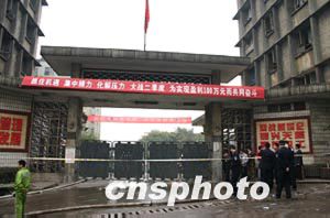 警戒线内是发生事故的重庆市天原化工总厂。十五日晚,该厂发生氯气泄漏事故,九人失踪死亡,十五万人撤离。作者:邹辉