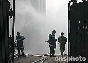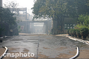 天原化工厂抢险指挥部目前已经撤离到离核心区一公里外桃花山庄。记者在山庄可以俯瞰到现场的情况。