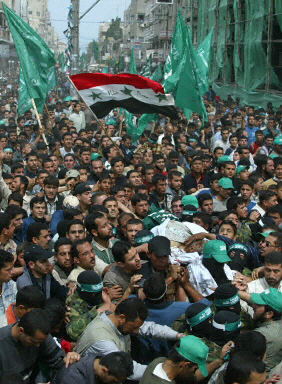 3月22日,近万名哈马斯的支持者和巴民众涌上加沙街头,为遭以军暗杀的“哈马斯”精神领袖亚辛举行葬礼,更抗议以色列不光彩的暗杀。28天后,巴勒斯坦各武装派别的支持者们又来给兰提斯送行。当他们拥着兰提斯的尸体,鸣着枪从加沙师法医院走向阿尔纳斯郊区,他们心中充斥的是忧伤?是愤怒?是恐惧?还是茫然?