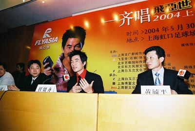 中新网4月19日电 亚洲天王巨星任贤齐近期在两岸三地举办巡回演唱会,消息发布后,歌迷掀起一股2004年度的“齐风暴”。此次,任贤齐为飞亚世(香港)体育用品有限公司品牌代言,将于5月30日举办“飞亚世任贤齐上海一齐唱演唱会”,让沪上歌迷充分体验演唱会的动感风情和无限活力。