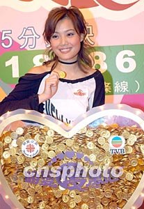 歌星容祖儿4月20日在香港出席慈善筹款晚会《明爱暖万心》记者会,容祖儿将金币注入心形灯箱,象征全力支持明爱筹款活动,筹款晚会将于25日晚举行。作者:邓庆乐