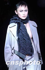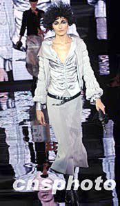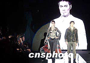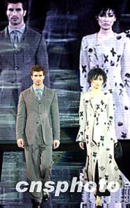 著名意大利设计师Giorgio Armani近日访港,于4月20日晚,在香港汇丰银行总部举行“2004-2005秋冬男女时装展”,模特演绎非常风格的男女系列时装,展现Armani设计精粹。作者:洪少葵