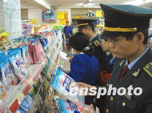 根据北京市工商局统一部署,为防止在北京市场上销售安徽阜阳地区发现的五十五种不合格奶粉,西城工商分局执法检查队四月二十三日对辖区内商场、超市、集贸市场及食品店进行严格检查。作者:郝军