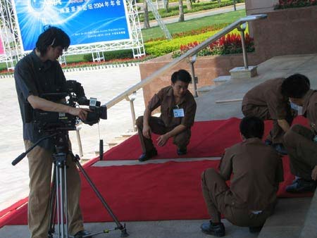 博鳌亚洲论坛2004年年会于4月24日在海南博鳌开幕。本次论坛年会主题为“亚洲寻求共嬴——一个对世界开放的亚洲”,表明2004年博鳌亚洲论坛年会将在全球背景下,探讨亚洲各国和地区区域经济合作问题,寻求亚洲共同进步的有效途径。图为参加博鳌论坛年会的记者与工作人员各司其职。(春风)