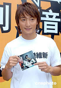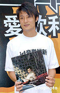 歌星余文乐4月28日在香港商业电台出席《id音乐维新》记者会,手持其个人音乐专辑,呼吁大家支持正版音乐。作者:邓庆乐