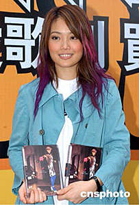 歌星郑希怡4月28日在香港商业电台出席《id音乐维新》记者会,手持其个人音乐专辑,呼吁大家支持正版音乐。作者:邓庆乐
