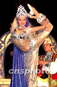 由新疆维吾尔自治区旅游局主办的“新疆文化风情节”五·一黄金周期间在深圳民俗村举行,热情的新疆歌舞表演让海内外游客感受到最纯正的西域风情。作者:陈文