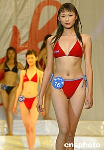 广西桂林市逸仙中学十六岁的女生唐瑛子,五月一日晚在重庆举行的首届中国西部模特大赛冠军T型台比赛中脱颖而出获得冠军,同时还获得最佳身材奖。中新社记者:任晨鸣