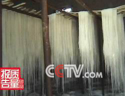 龙口市中村粉丝厂技术员:每家有每家的秘方,不过做出来不一样了,而且严格来讲,(我们的产品)无公害,别看我们看起来好像不正规,不管商检什么都不怕,这点我们是敢保证的。