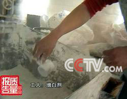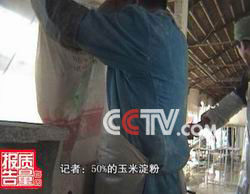 掺玉米淀粉虽然能大大降低成本,但是由于玉米淀粉颜色发黄发暗,所以厂家还要对淀粉进行特殊处理。在三利公司,记者就目睹了处理的过程。