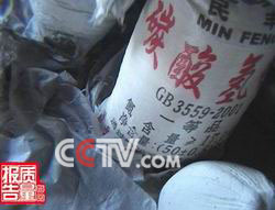 虽然用玉米淀粉掺假,再用增白剂“美容”已经成为山东烟台一些龙口粉丝生产厂家降低成本的惯用手法。然而记者在进一步的调查中,一个奇怪的现象引起了我们的疑问。在坤宝、三塔、东埠等几家粉丝厂的车间里,记者都不约而同地发现了农用碳酸氢铵化肥。粉丝厂里用化肥来做什么呢?记者随后来到了附近的一家化肥店。
