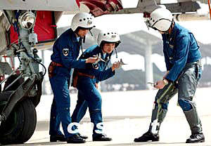 解放军济南空军航空兵某团今春借装备新飞机之机,组织各类人员进行业务训练,并对战法进行再度优化创新。图为飞行员利用飞行间隙研究新战法。作者:崔文斌