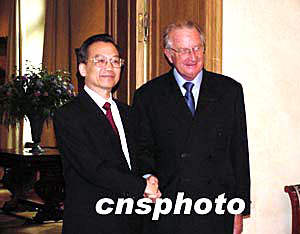正在比利时访问的中国总理温家宝五月五日会晤了比利时国王阿尔贝二世,温家宝转达了中国国家主席胡锦涛对国王的问候,并就共同关心的国际与双边关系问题进行了交流。作者:蔚中