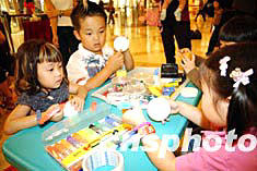 5月6日,香港海港城举办“母亲节率先表爱意”活动,小朋友与母亲一起制作徽章享受温馨快乐时刻。作者:洪少葵