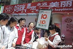“母亲节”在即,北京各大商场纷纷推出女性用品促销专场,一家内衣品牌挂起“妈咪!愿你永远美丽”的温情标语吸引了大批女性消费者。中新社记者:廖文静