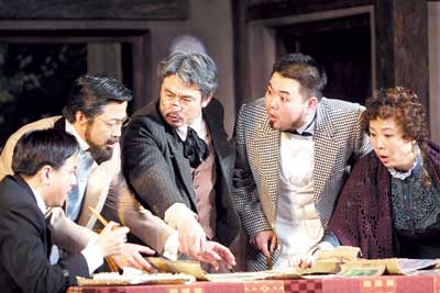 这一次由任鸣导演的《油漆未干》,取得了相当好的演出效果。在热闹的舞台上,观众始终能感受到一个画家的灵魂,在伟大的艺术天堂里嘲笑着过去看不起他,现在却想靠他发财的人们。在金帆音乐厅里,观众不知不觉地和死去的画家站到了一起,愤怒、鄙视的情绪充斥在剧场里。