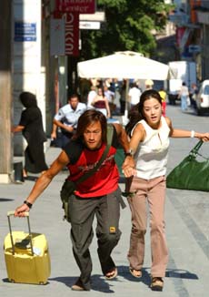 这场惊心动魄的追逐戏在雅典市中心宪法广场拍摄,由于现场人潮拥挤,许多人根本不晓得在拍戏,加上何润东与蔡琳拎个大卡行李箱,活像对亡命鸳鸯,引起很多路人侧目。