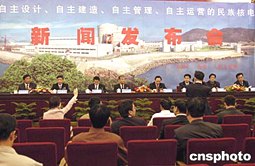 五月十日,中国核工业集团公司在北京人民大会堂举行的“秦山核电二期工程1、2号机组全面建成”新闻发布会,介绍秦山核电二期工程2号机组5月3日凌晨1时15分正式投入商业运行的情况。作者:邹宪