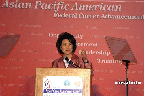 中新社华盛顿五月十日电(记者余东晖)美国劳工部长赵小兰十日承诺,将继续推动亚太裔雇员在美国联邦政府的职业晋升机会。